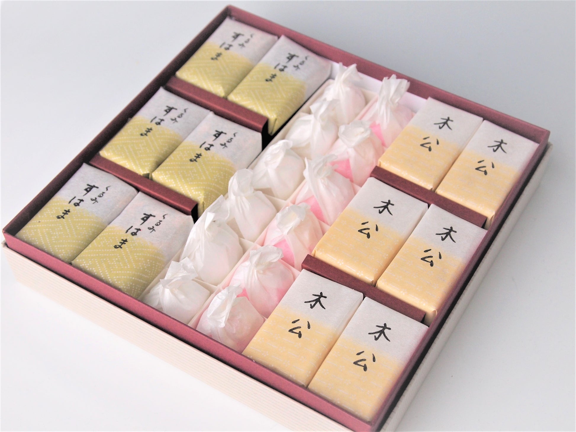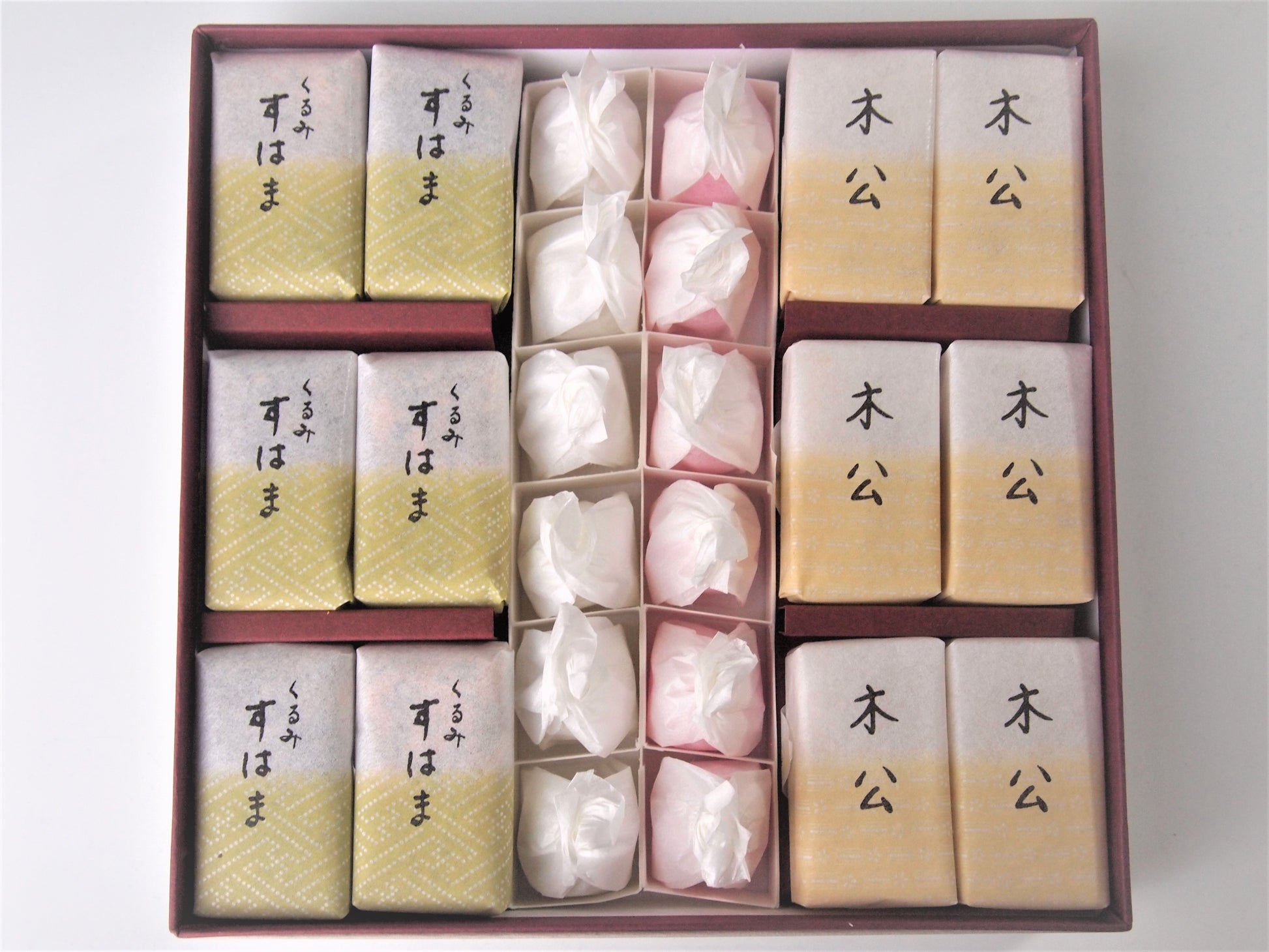 胡桃を使った当店銘菓の詰合せ。 千歳くるみ12個、木公6個、くるみすはま6個入り。